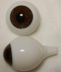 Keskiruskeat, puhalletut kristallilasisilmät, laaja iiris, koko 20 mm