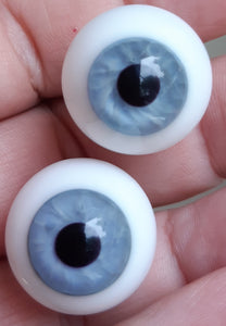 Jäänsiniset, puhalletut kristallilasisilmät, laaja iiris, koko 22 mm